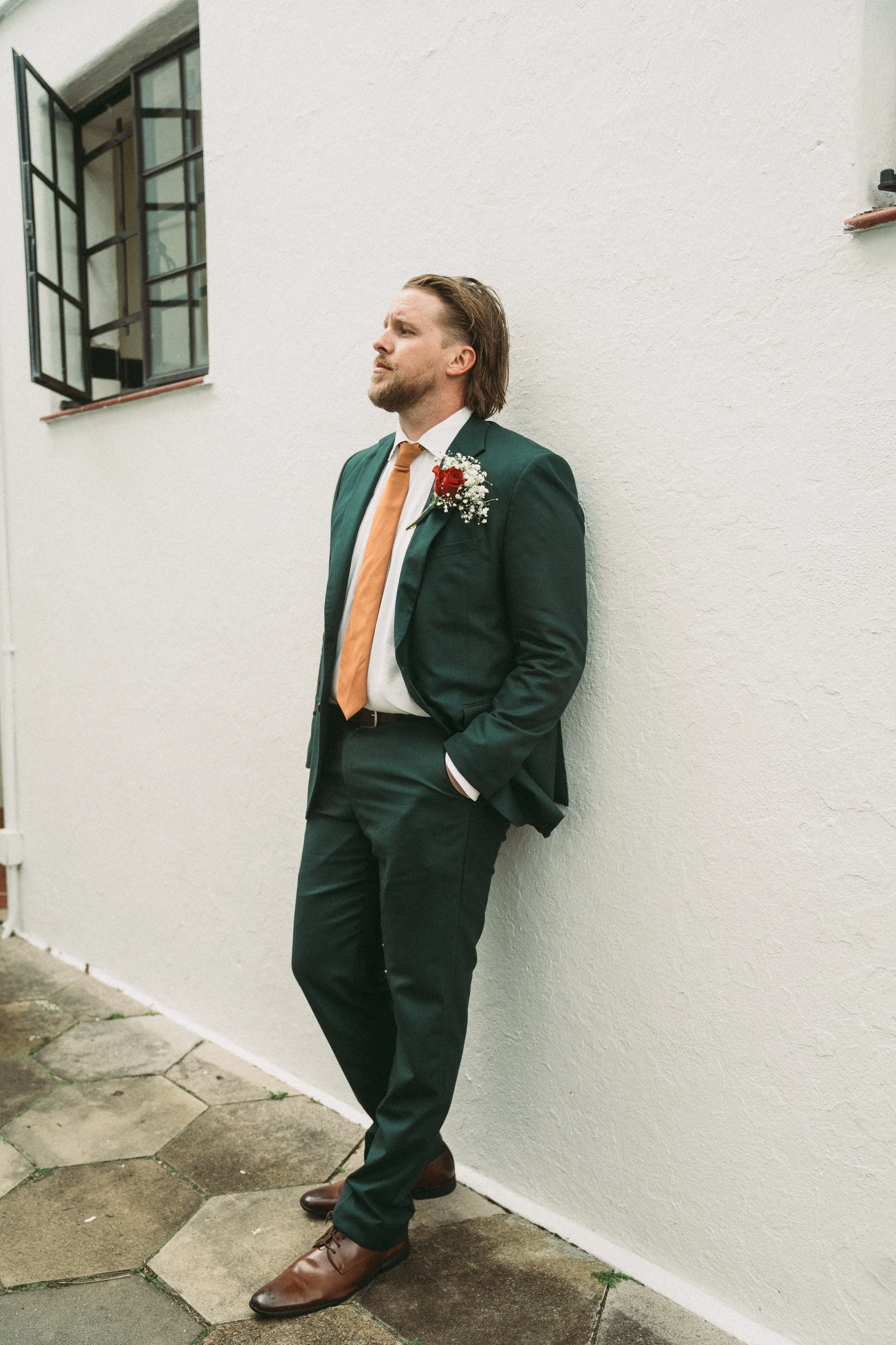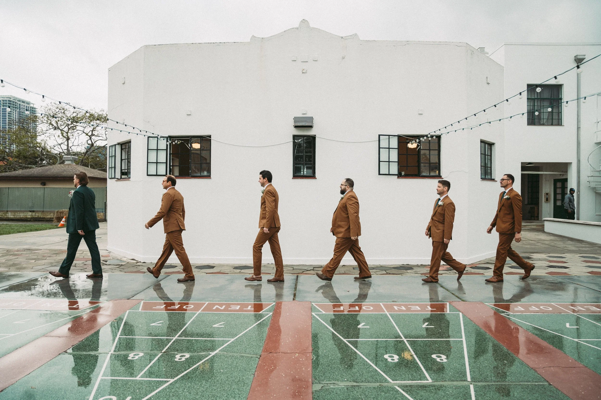Once the bridesmaid and bride were dolled up, we headed to the venue, the St. Pete Shuffleboard Club, in the afternoon. It’s a particularly stunning venue, with vivid shades of green and neutral walls that were perfect for capturing the warm hues in the bridesmaids’ and groomsmen’s attire.