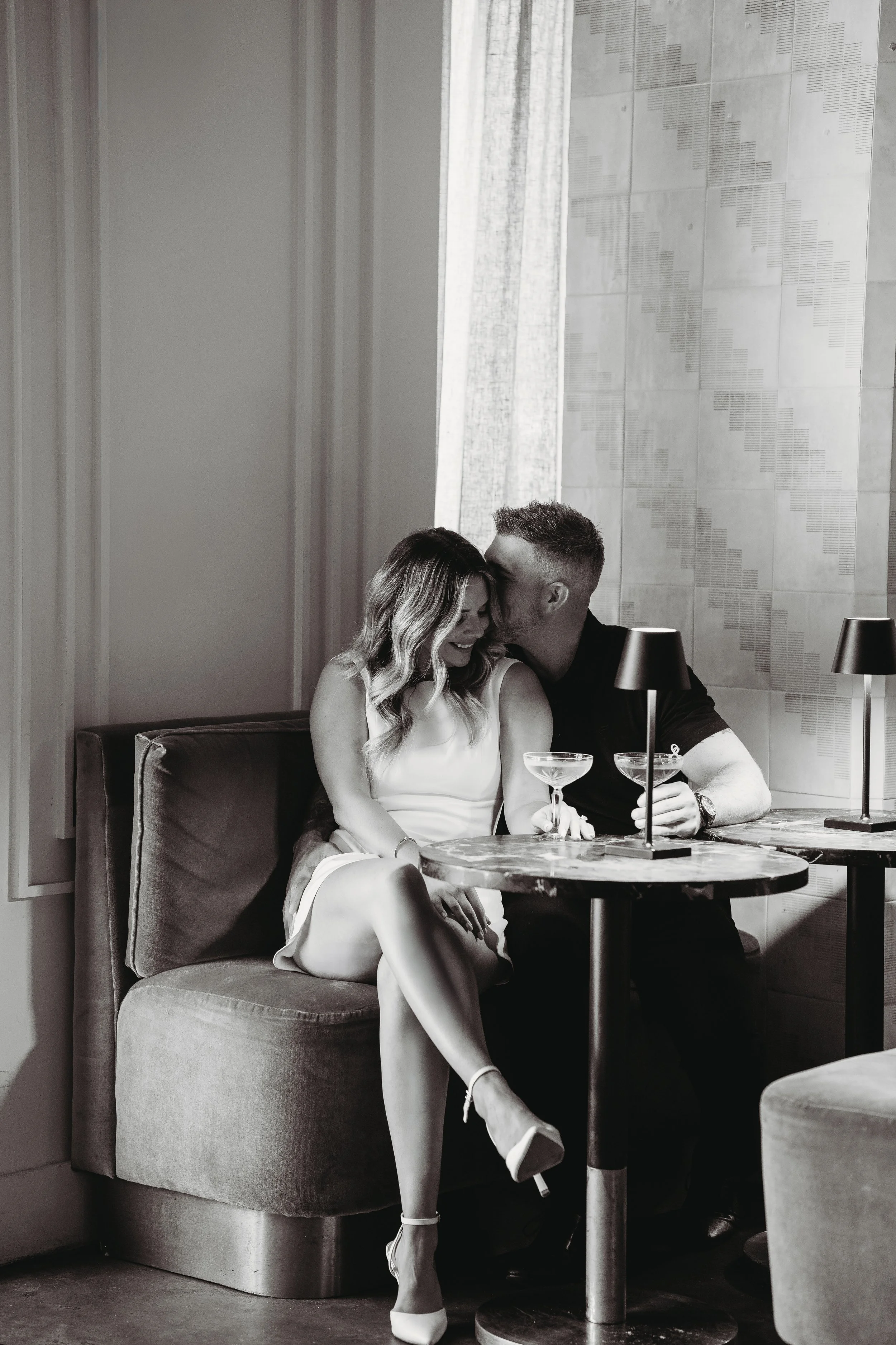 We had the pleasure of taking Lauren and Scott’s engagement photos, knowing Sonder would be the perfect venue for the flash photography look they wanted to achieve. Lauren and Scott had a natural chemistry that felt effortless on camera. Combined with our creative direction and encouragement to the couple to partake in Sonders’ delicious craft cocktails, the entire experience flowed smoothly and yielded beautiful results.